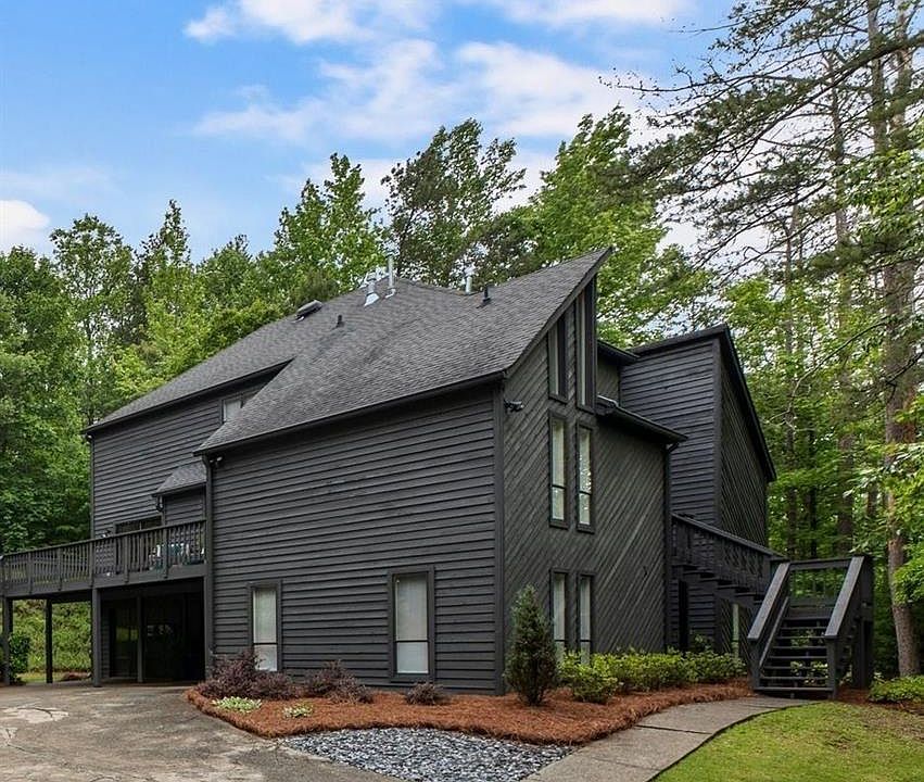 This stunning, fully renovated contemporary home is tucked on a 1.61-acre estate lot, offering serenity, privacy, and easy access to Historic Canton Street. Set on a quiet cul-de-sac surrounded by 13+ wooded acres, this home is a rustic, yet modern escape just minutes from downtown Roswell. Inside, you’re greeted by a dramatic two-story great room with updated light fixtures, a fully open floor plan, a custom iron staircase, a stone fireplace, soaring ceilings, and floor-to-ceiling windows that flood the space with natural light. The gourmet kitchen was fully renovated, top to bottom, featuring custom cabinets, a gas cooktop range with double ovens, and a large island with quartz countertop, marble backsplash, pantry, and bar area with beverage refrigerator and cabinetry. The primary bedroom is on the main level with a fully renovated spa-style bathroom with double vanities, quartz countertops, a large shower with a frameless shower enclosure, and a large walk-in closet with a custom closet system. Main floor is a fully open concept with a large great room, a dining area, and a private office/flex room. Three additional bedrooms are on the second floor with spacious closets and a renovated bathroom with tub/shower, tile floors and sub-way tile shower surround, and an updated vanity with quartz countertops. The terrace level—complete with hardwood floors—is ideal for an in-law suite, guest quarters, or rental income with large bedroom / flex-room, living room and dining area complete with cooktop, custom cabinets and microwave. The expansive deck off the kitchen offers easy access to the landscape yard, sitting area for outdoor dining and entertaining.