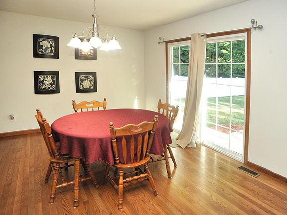 Welcome to this beautifully maintained 3-bedroom, 2-bathroom ranch situated on a serene 1.09-acre lot with a private, wooded backyard view. This home offers a warm and inviting interior featuring hardwood floors, cathedral ceilings, and a cozy fireplace. The spacious kitchen includes all appliances, and the main level laundry adds everyday convenience. Enjoy peaceful mornings on the covered front porch or relax on the back patio overlooking the partially fenced yard. The primary suite features a tray ceiling, walk-in closet, and a private ensuite bath. Solid six-panel wood doors and ceiling fans throughout add both quality and comfort. A 2.5-car attached garage and storage shed provide ample space for tools and toys. Don't miss this quiet retreat that offers both privacy and practicality.
