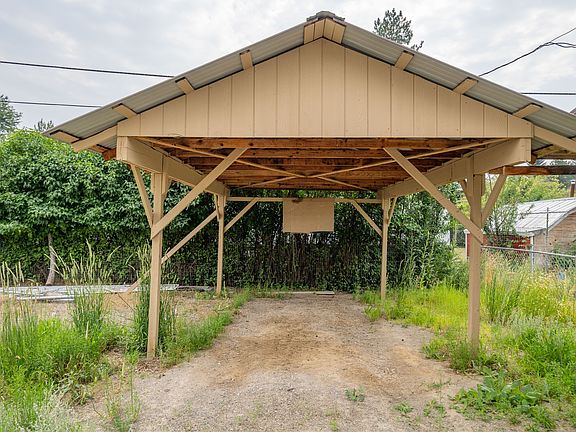 This charming 2-bedroom, 1-bath ranch style home features stunning wood floors and rustic exposed log beams, blending classic style with modern updates. The open concept kitchen, dining, and living room area boasts an updated kitchen with beautiful alder cabinetry and a stylish stone backsplash, perfect for entertaining. Unique artistic shelving adds a touch of creativity throughout the space. Enjoy outdoor living on the covered front and back decks, and take advantage of the fully fenced yard. Additional amenities include a carport, a 2-car garage, and a spacious shop, providing ample space for parking and projects. Don't miss out on this unique and inviting property!