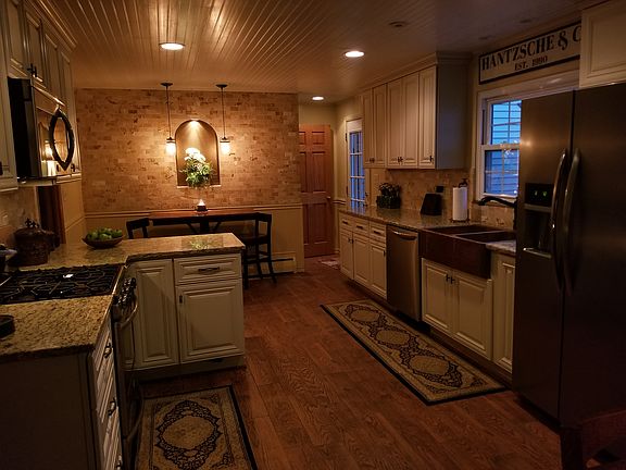 Mid-century modern professionally landscaped, multi-level with living room and two additional family rooms, bar room, three-seasons room, composite deck with water feature. Many home improvements including: Windows Master suite addition Roof (30-year shingles) Rear fence Front fence Vinyl siding Shutters Front landscaping with brick path Landscape lighting Driveway turn-around with Unilock wall Solid wood interior doors Boiler replacement Barroom expansion Central air installed Wood floors in lower family room Barnwood wall in master bedroom Kitchen remodel Hallway bathroom remodel Composite deck Water feature Shed Firepit Half bath Revealed/refinished bedroom hardwood floors 3 exterior doors and garage door Three-seasons room tile/windows/slider Full house electrical update