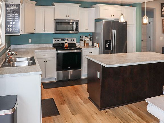 Welcome Home!Step into this like-new home nestled in a peaceful cul-de-sac. Designed with comfort and functionality in mind, this home features a spacious open floor plan with vaulted ceilings, creating an airy and inviting atmosphere throughout.The heart of the home is the exceptionally large kitchen, offering an abundance of storage, ample countertop space, a center island, and its very own dining area -- perfect for both everyday living and entertaining.Enjoy the privacy of a split floor plan, which includes a generous master suite complete with a walk-in shower and a walk-in closet. Two additional oversized bedrooms each feature access to their own private bathroom, making this layout ideal for families or guests.Step outside to a spacious lot that includes a children's play area and a fully air-conditioned storage building -- great for a workshop, hobby space, or extra storage.Located in a growing town with a top-rated school district and an abundance of amenities, this home truly has it all. Don't miss your chance to make it yours!