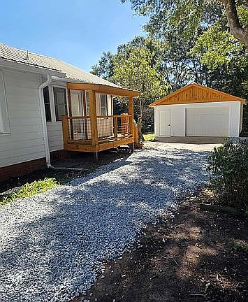 The kitchen has beautiful sleek granite countertops, stainless steel appliances, a deep stainless steel sink, a breakfast bar perfect for casual dining. The living room has a cute area perfect for a reading nook or plant room with plenty of natural light. The primary bedroom is a serene retreat with a large en suite bathroom and his and hers closets. The other two bedrooms are large with plenty of room. Both bathrooms have beautiful tile showers with front lit mirrors. There is a large detached 1 1/2 car garage with extra storage. New exterior doors, windows, new fully insulated, all new plumbing, electrical, hvac.