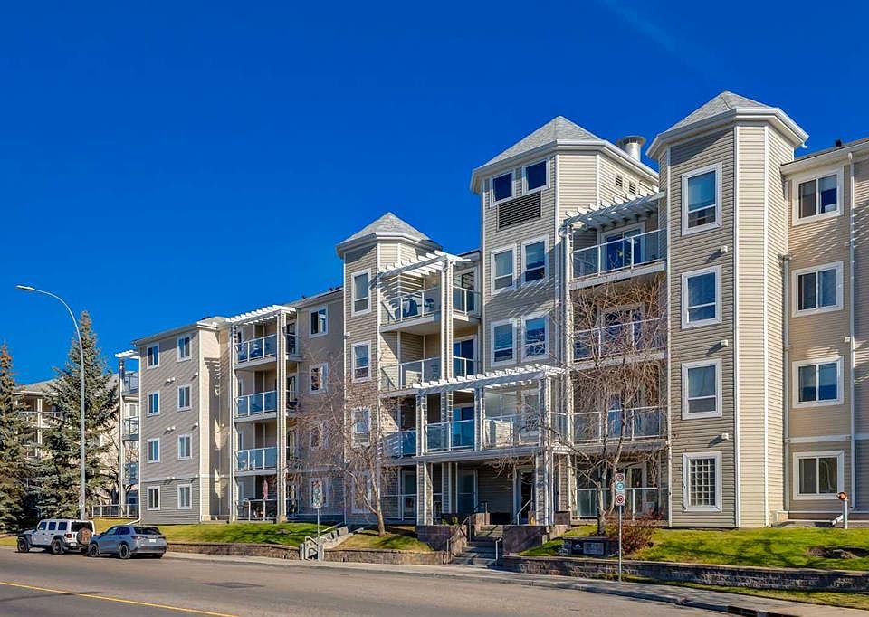If convenience and affordability are important to you, then come check this one out. Just steps away from all amenities including a C-Train Station, YMCA, Library, Schools, Groceries, Restaurants and Shops. This 2-bedroom, 2-bath unit is conveniently set to welcome the east morning sun, and being on the ground floor you have unit access directly off your patio, and even a patch of grass! Recent updates include brand new carpet and updated lighting. The updated appliances (2021) are immaculate, including a Bosch dishwasher.Other features include an open concept floorplan and in-unit laundry. You’ll have your very own ensuite bathroom in the primary bedroom as well. All the light fixtures and plumbing fixtures are new as well, so there's nothing to do, except move-in and cozy up beside your gas fireplace. Heated and secured underground parking is titled with your unit and as well as plentiful heated underground visitor parking and bicycle storage. We’d love to accommodate your showing needs, come check it out today!