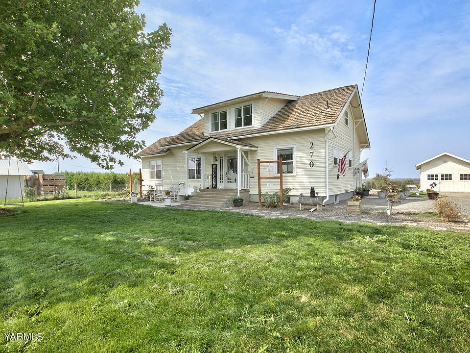 Discover modern updates mixed with vintage charm in this inviting 1931 farmhouse, nestled on 1.16 acres in the heart of Zillah. With 3,021 square feet of living space, this home includes 3 bedrooms, a non-conforming bedroom, and 2.5 baths. The main floor features a primary bedroom with an en suite bath, while the upper level offers two additional bedrooms and a full bath. Downstairs, an updated lower level reveals a spacious living room and non-conforming bedroom, perfect for extra space or guests. Original hardwood floors and cabinetry add warmth and character throughout.Outside, the fully fenced acreage includes a horse stall and spacious pasture, a dog run, and breathtaking countryside views. An outbuilding with power is ready for use as a workshop, studio, or extra storage. Whether you're looking for a peaceful retreat or a place to enjoy equestrian hobbies, this property offers a unique blend of relaxation and versatility. Embrace the picturesque surroundings, space to garden, or care for animals in this charming rural haven. Schedule a showing today to experience this remarkable property!