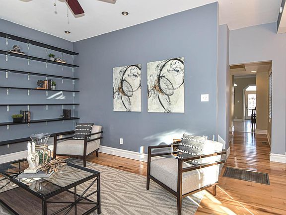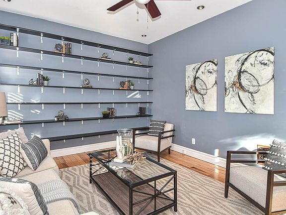 Nice backyard spaceNicely sized bedroomsWell lit kitchenBeautifully redoneFloor to ceiling bookshelvesLarge formal diningGas stove