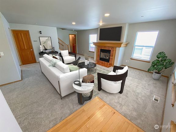 Nice craftsman style home. Nicely situation on a village green, fully fenced side yard. Home is light and bright with new interior paint, new carpets and flooring. Front entry way leads you into warm spacious living room with gas fireplace, dining / family, maple cabinetry. Large Primary suite with tub/shower combo. Additional bedrooms are nicely proportioned with generous closet space. Close to Golf course, I-5, JBLM, Schools and trails + restaurants.
