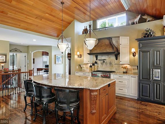 An exquisite walkout rambler situated at the end of a quiet cul-de-sac surrounded by large mature trees.An open concept main floor living space will greet you with natural light, heated stone floors and great views of a private back yard with a large in-ground pool and landscape waterfall. The main floor also includes a large master suite with tray ceilings, walk-in closet and full bath. The lower level greets you with a spacious family room with a custom stone fireplace and a bar that's perfect for entertaining. You'll also enjoy the two large bedrooms with walk-in closets and two full baths. It's ideally located just a few minutes from Downtown Wayzata, Lake Minnetonka and long walking trails.
