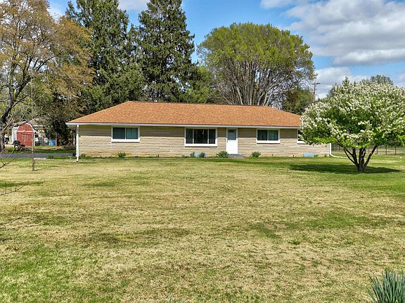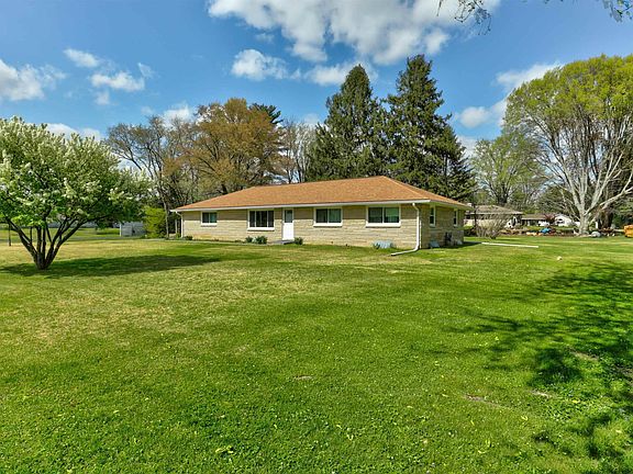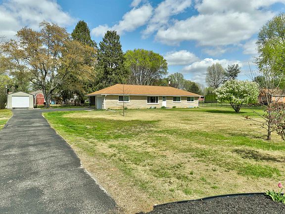 This beautiful ranch style home with 3 beds and 2 full baths is nestled on a quiet cul-de-sac, yet close to shopping and entertainment. The property boasts nearly an acre of land, providing ample space for relaxation and recreation. The home offers an array of updates with hardwood floors, a newer roof, windows, furnace, electrical, and plumbing. Both bathrooms have been tastefully renovated as well. The large eat-in kitchen offers a ton of cabinet and counter-top space, and all appliances are included. Kitchen is conveniently located just off the covered carport, ensuring easy access for unloading groceries. The full basement offers endless potential for an additional bedroom, living area, or entertainment area with another 1288sqft of additional space, and includes another stand up shower, large closet, and built-in shelving and storage. The expansive outdoor space includes a large covered patio with ceiling fan and 1 car attached garage. Perfect area for entertaining or extra space for multiple cars. The driveway was recently sealed, and there is a new outbuilding with electrical service, offering a ton of extra storage.