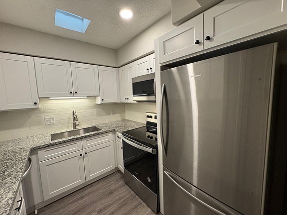 Contemporary style renovation of condo one bedroom/one bath unit at the Barclay near the Med Center and Rice Village. A stunning example of what can be done with updates creates this crown jewel unit, It includes such updates as granite countertops, shaker-style, soft-close cabinets, vinyl plank flooring, paint, and canned LED lighting throughout, so there is not a single dark area. All of this together with the amenities of a pristine pool (There are 3 pools at the Barclay.), 24hr. maintenance hotline, and the majority of bills (all utilities included) paid for an easy, effortless living experience. Enjoy a very large outdoor balcony with parquet-look tiling off the main living room area. Gleaming stainless steel kitchen appliances included. Zoned to distinguished HISD schools to include Mark Twain Elementary. Make your appointment to see it today.