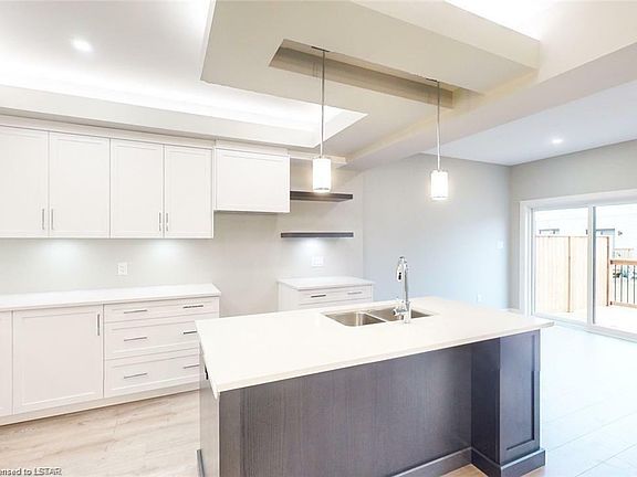 Welcome to Fox Crossing, Nestled near the edge of London's flourishing North West boundary.Recreational facilities including basketball, tennis, and racquetball courts, all just a leisurely stroll away. With Hyde Park and the vibrant Masonville shopping district within close proximity. This well designed home boasts features including: 9' ceilings on the main floor, creating a sense of spaciousness and elegance. Level 1 quartz countertops, offering both durability and sophistication. Oak railings with black iron spindles on the stairs, combining classic charm with modern design.Flat painted ceilings. White contemporary doors and trim, adding a timeless touch to every room. White wire shelving in closets, maximizing storage efficiency. Exterior features include James Hardie board and Ledgestone on the front façade, complemented by black exterior windows & all black soffit, fascia, and trough. Single-car garage with a black insulated door provides convenience while the stone paver driveway & walkway to the front porch add to the property's curb appeal. Professionally designed, fully sodded landscaping creates a welcoming outdoor environment, complete with a 10' x 10' deck for outdoor enjoyment. Inside, you'll find luxurious touches such as laminate flooring on the main (excluding the powder room), ceramic tile flooring, and plush carpeting on the second floor. The professionally designed Cardinal Fine Cabinetry kitchens & vanities feature soft-closing cabinet doors & drawers, along with single-handle Moen faucets and double stainless steel undermount kitchen sinks. The powder room boasts a white pedestal sink, while the ensuite offers a marble shower base with tiled surround & a glass door. Additional features include a high-efficiency forced air gas heating system, central air conditioning. Plus, rest easy knowing your home is protected by a tiered seven-year Tarion Warranty Corporation warranty.