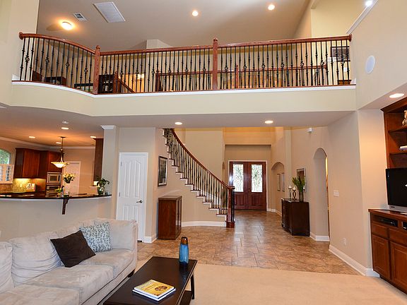 Exquisite space for a growing family, this home features a 2 story great room with open, flowing floor plan. Huge gourmet cooks kitchen and formal dining is connected by a cozy butler pantry and wine area. Upstairs is guest suite, family room, private office, and oversized bedrooms. Beautiful shade trees front and back, and close to outstanding schools!