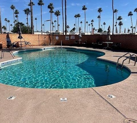 Additional perks include eight insulated windows for energy efficiency, a nice storage building with washer/dryer and extra storage, and low-maintenance landscaping to enjoy the Arizona sunshine with ease. the community offers a heated pool, library shuffleboard and a lg activity room. The light rail is only 1 mile away. Sun Cir trail is lighted, paved and only 1/2 mile away. No need to bring anything, move in ready and all furniture included.