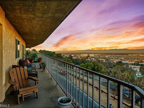 BREATHTAKING 'TOP OF THE HILL' PANORAMIC VIEWS of CITY and MOUNTAINS from every room in your very spacious and unique 1-bedroom, 1.5 bathroom condo at beautiful Panorama Summit. With meticulous attention to detail, this condo features modern clean lines and high-end amenities. Enjoy your spacious balcony as you relax on any given day while Mother Nature entertains you with colorful skies at sunrise & sunset. The winter snow-capped mountains are beautiful every year. You can also see down town LA and the Hollywood sign on clear days! Newer ‘wood look’ tile floors throughout! The luxurious kitchen features beautiful leathered granite countertops with task lighting, backsplash, newer stainless steel appliances and lots of cabinetry for storage. Recessed lighting throughout and ceiling fans. The gas fireplace in the living room has custom stone-work surrounds. Larger primary suite than most condos features a dual sink vanity area with custom cabinetry and walk in custom closet. The walk-in shower is very spacious with beautiful updates of infused cultured marble. You'll love having your own inside laundry (stacked washer and dryer). Newer dual pane windows and window coverings, newer central AC/heating. A tandem parking space with room for two vehicles is in the enclosed garage with a owner owned EV Charger! Just outside your door on the first level you'll have access to a fitness room, sparkling swimming pool, spa, sauna and club room! Walk outside to the many trails and enjoy the panoramic views and parks around the walking paths. Very easy access to many restaurants that Long Beach and Signal Hill have to offer, freeways, beaches, Cal State LB, Belmont Shore, down town Long Beach, restaurants & more!