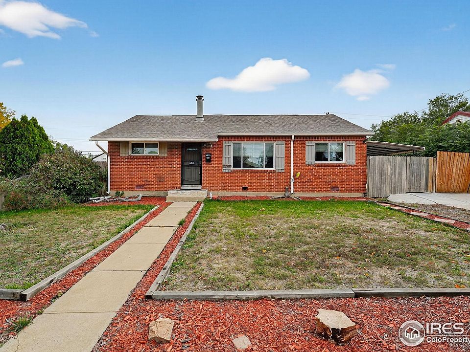 Charming ranch-style home in the heart of Thornton! This beautifully maintained home offers comfortable living with three spacious bedrooms and an updated full bath. Step inside to a bright and welcoming living room with wood-burning fireplace and an adjoining dining area perfect for entertaining. The updated kitchen features granite countertops, newer cabinetry, stainless steel appliances, and tile flooring. A private bedroom area off the living room includes a remodeled bathroom for added convenience. Separate laundry room which accommodates a full sized washer and dryer. Colorado's sunshine on the expansive, partially covered patio overlooking the fenced backyard. The oversized 540-square-foot detached garage and workshop provide plenty of space for storage, hobbies, or projects. Recent updates include a newer roof (2020), carpet, flooring, windows (2021), water heater(2022), furnace (2019), and interior paint. Ideally located near the Thornton Community Center, shopping, dining, schools, public transportation, and major commuter routes-this turnkey home is ready for you to move right in!