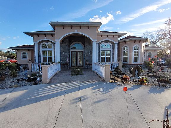 This little castle has everything. Come enjoy it. This custom home is block/concrete built to last a lifetime on 2.41 acres. Built in 2021, everything is new. Talk about luxury, Italian porcelain tile throughout, quarts countertops even in the laundry room; 48" cabinets with crown molding; extra-long jacuzzi tub, 42X20 volleyball pebble tec pool, full exterior kitchen w/2 propane ranges, Argentinian grill, griddle, smokeless firepit, 10 station sprinkler system, sprayed insulation, all lighting is LED, fruit trees galore and so much more. 220 line set for sauna!