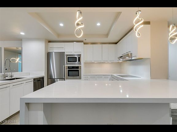 Welcome to luxury high-rise living on the 20 th floor with breathtaking views of FULL South facing Las Vegas Strip, Red Rock Mountains, Mount charelston and city lights, with sunset views. This beautifully upgraded 2- bedroom, 2.5 bath condo offers 1,785 sq ft of modern elegance, featuring floor-to-ceiling windows, blinds, and a sleek white kitchen that opens into the dining area and spacious living room. Upgrades are found throughout, including premium lighting, appliances, and upgraded in-unit washer and dryerwith upgrades to the closets and cabnet storage, plus a locked wine cellar. Enjoy access to resort-style amenities such as high-security underground parking, valet service for guests, three swimming pools, Jacuzzi , private cabanas with TV's and refrigerators, multiple fireplaces, racquetball court, movie theater, dry sauna , steam room , pool table entertainment room and 24-hour concierge. Located within walking distance to the Las vegas strip's best dining, shopping, and entertainment. Move-in-ready
