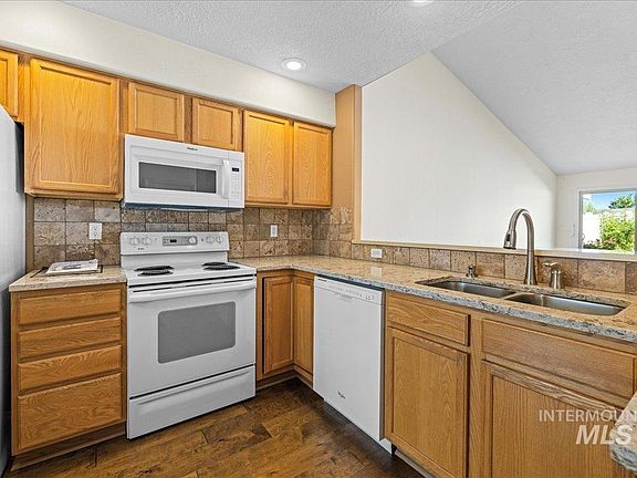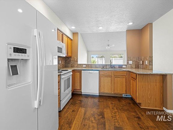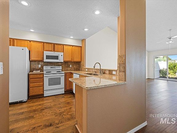 Cute townhouse in a very desirable 55+ gated community! Great location, close to golf course, shopping, and freeway access! Amazing senior community with community activities. Open floor plan with spacious Great Room and Hardwood flooring in Kitchen, eating area and family room along with granite countertops. Master bedroom with walk in closet, dual vanities and walk in shower. East facing fully fenced backyard with concrete patio and a small grass area for pets. Dues include trimming, mowing, snow removal, sprinklers, painting and roof. Washer, dryer and refrigerator included.