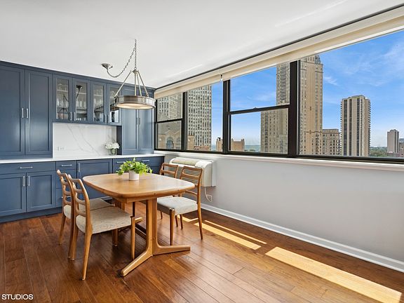 Welcome to 2700 N Hampden Ct, Unit 17D located in the heart of Lincoln Park just a stone's throw away from all that the neighborhood has to offer. This recently renovated 2 bedroom/2 bathroom corner unit with southwest exposure offers unbeatable City Skyline, Lake Michigan and Navy Pier views and boasts timelessly updated, high quality finishes throughout. Step into the spacious living area boasting newer engineered hard wood flooring throughout coupled with a large wall of windows to showcase the incredible city and lake views from every corner. Seamlessly flow into the generously sized dining space including a perfectly appointed and newly added floor to ceiling built-in featuring a paneled beverage fridge and ample additional storage space. The completely gut-renovated kitchen boasts newer appliances, cabinets, backsplash, tile, quartz countertops, plumbing and light fixtures, and includes plenty of additional storage and counter space. The well thought out design and lay-out truly take full advantage of the space and ensure optimal storage and square footage usage! Next, step into the large corner primary en-suite bedroom showcasing incredible skyline views from every angle, newer engineered hardwood floors and black-out shades for added comfort. The beautifully and recently gut-renovated primary en-suite bathroom is the perfect space to relax and unwind, including marble countertops, marble shower tile, newer cabinets with ample storage space, newer plumbing and light fixtures and multiple built-out closets for all of your wardrobe needs. Around the corner is a generously sized secondary bedroom with engineered hardwood flooring and large west-facing windows perfect to enjoy the sunset from. Around the corner is an easily accessible, light and bright secondary bathroom including a bathtub-shower and a well-sized vanity for additional storage. Natural light is abundant in this high-floor corner unit with large windows in every room! This residence has been impeccably maintained, with a recently completed, thoughtful, high quality and timeless remodel - this is a truly move-in ready home! Plenty of storage throughout the unit and an additional storage cage. 1 Deeded parking space INCLUDED in the price!! Excellent and well managed Lincoln Park boutique high-rise building including an expansive rooftop sundeck with 360 views with newly added furniture and grills alongside a large, heated pool with city skyline views, dog-spa, fitness center, shared laundry room, security, doorperson and on-staff property management. Located in the heart of Lincoln Park near the hustle and bustle and within walking distance of the lake path, park, Lincoln Park Zoo, public transit, grocery stores, shopping, restaurants and night life. You do not want to miss this incredible opportunity to call this home!