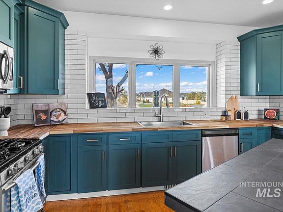 This gorgeously remodeled 4 bed 3 bath home on over a 1/4 acre lot in one of Idaho's fastest growing cities! No stone was left unturned in this remodel! Gorgeous new kitchen w/ a custom tile surfaced island, new butcher block counter tops, new stove, new interior paint, brand new furnace & AC, new power onsite, new sod & irrigation with 4 zones, & 2 new decks! Main level master with a stunning spa like bathroom. Relax in the large soaker tub or step outside onto the private deck & enjoy some quiet time. Vaulted ceilings in the great room w/ large east facing windows for amazing views, & fench doors lead to the spacious deck looking out to the foothills. Upstairs you'll find 3 additional guest bedrooms, another full bath, & a flex space/loft perfect for a work from home set up, or a lounging space. Large 3 car garage with new epoxy floors & a private room perfect for a home gym or secluded office. Tons of storage space in this home!