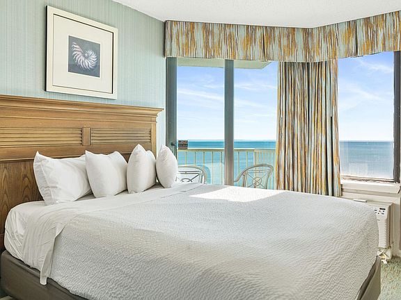 Experience breathtaking oceanfront views from the 15th floor of this beautifully updated studio at the prestigious "The Strand" Resort, part of the renowned Breakers family. This highly rated and sought-after destination boasts a range of modern enhancements, including freshly painted accent walls behind the beds, new curtains framing the back balcony, and meticulously maintained carpeting throughout. The kitchenette has been upgraded with new cabinets and features a refrigerator, microwave, toaster, and coffee maker, along with granite countertops in both the bathroom and kitchenette. Stylishly furnished and designed for comfort, this unit is one of only 87 exclusive condos in the resort. Enjoy top-tier amenities, including an onsite restaurant and bar, fitness center, outdoor pool, jacuzzi, fire pit, and spacious oceanfront seating areas. Whether you're seeking unparalleled coastal living, excellent rental income potential, or a property with competitive HOA fees, this is a rare opportunity you won?t want to miss. Schedule a showing and experience this incredible property in person!