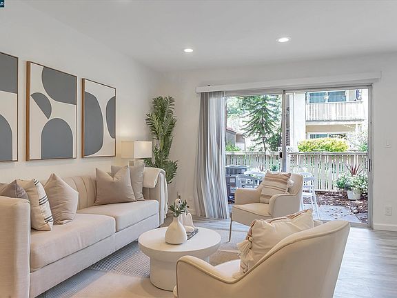 Prime location alert! Nestled just a mile away from downtown Walnut Creek, and a mere half-mile from BART, this remodeled condominium is a gem. Adjacent to the serene Walden Park & Iron Horse Trail it offers the epitome of convenience and beauty. Inside, enjoy fresh paint, recessed LED lights, and an updated kitchen boasting stainless steel appliances. The remodeled bathroom features a dual sink vanity for added luxury. Positioned as a coveted ground-floor corner unit, it offers a private enclosed patio with serene greenbelt views. Enjoy ultimate privacy, as no neighboring units have sightlines into the bedrooms. Nestled within the highly sought-after Walnut Creek School District, this home provides unparalleled access to top-tier educational opportunities. With its stellar features and unbeatable location, this condominium scores a perfect 10+! Monthly HOA fee encompasses a comprehensive array of amenities and services, including water, sewer, garbage disposal, exterior maintenance, landscaping upkeep, as well as access to the community pool, clubhouse, and laundry facilities.