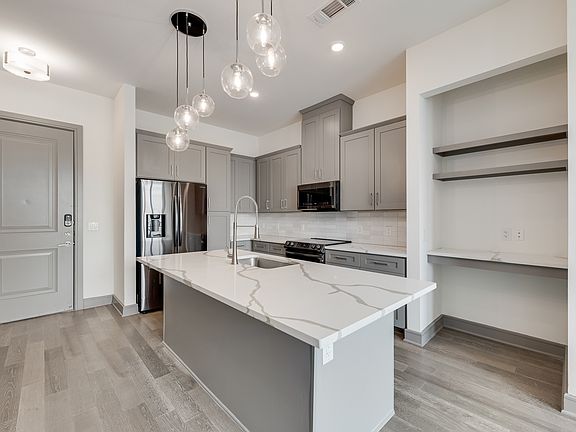 Sparkling poolModern samsung appliancesModern condominiumUpscale comfortEngineered wood flooringStainless steel appliancesCustom built-ins