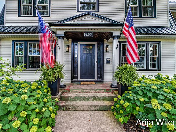 Adorned with a new facade, metal roof, siding, maintenance-free deck, and lush plantings. A charming vestibule opens to an impressive historic staircase and planked wood floors throughout the main level. The spacious kitchen features custom cabinetry, stainless steel appliances, custom tile, and a massive granite island, flowing into a bright dining area with easy access to the newer deck—perfect for entertaining. A newly designed main floor bath and bonus mudroom add convenience. The superb floorplan offers an expansive living area with a cozy fireplace and lovely private study.
