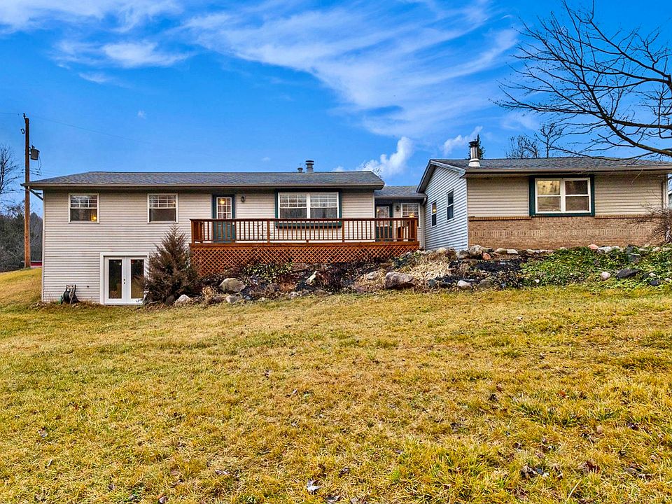 Super cozy move-in ready ranch on almost an acre of rolling hills. 3 bedrooms on the entry level with a bonus bedroom in the walk-out basement. The family room features a gorgeous stone natural fireplace and vaulted ceiling. Wood floors throughout the foyer, kitchen, breezeway/mud room, and dining. New paint throughout with newer utilities and roof... and ample amount of storage space! Front and rear decks provide a peaceful opportunity for entertaining.