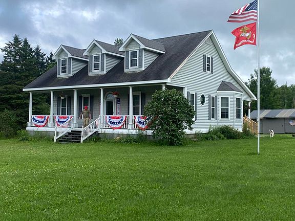 2005 country cape home on spacious beautiful lot. Over 25 surveyed acres of mixed field and woods, walking trails, apple trees, garden spot. Enjoy country living but 10 mins to Houlton. Cape offers 4 bedrooms and 3 full baths! Maple kichen with custom tile work, hardwood flooring and appliances included. 2 bedrooms on first floor, 2 bedrooms on second level and lots of finished basement space for workout and rec room. Heated garage and 32x36 insulated workshop! Additional 21 acres of land available across the road! Home is move in ready!