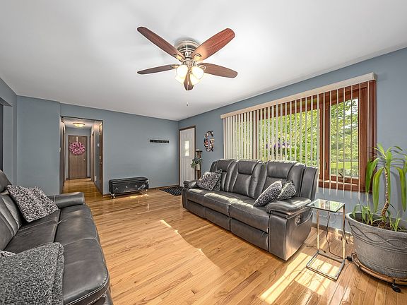 Spacious ranch home on beautifully landscaped fenced yard. Home features, hardwood floors, spacious 4 bedrooms, 3 full baths and a finished basement. Finished basement has family room area and space for pool table. Nice counter space with cabinets for plenty of storage. Great space for entertaining. Master bedroom has full master bath and sliding glass door that leads to private backyard. Furnace/AC are approx 4 years old, roof was just done end of June 2020. 50 gal tank water heater. All appliances stay except for washer and dryer. 26 x 24 true 2.5 detached heated garage. Concrete driveway with separate fence to yard. Brick paver sidewalk leading to front door. Brick paver patio and concrete patio both in back yard. Beautiful home a must see.