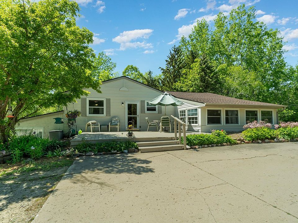 Country Living at it's Best with Deer Blind on site! 9.7 acres surrounds this tranquil, comfortable ranch home with 3 beds and 2 baths and hiking trails! Much has been renovated and completed for you to move right in and enjoy: new roof on home and pole barn in 2022, new boiler system in 2015, new Anderson windows in 2021 and 2009, new plumbing in bath 2023 with new surround 2023, septic pumped 2019, new electric water heater 2017. Lovely pine floors under front bedroom carpet. All this and 2 outbuildings, one is 42 x 24 with attached 24 x 16 utility building and the other 20 x 16 building is a workshop with 220 amp service and wood burning stove. Call today for your private showing of this truly stunning home and acreage!