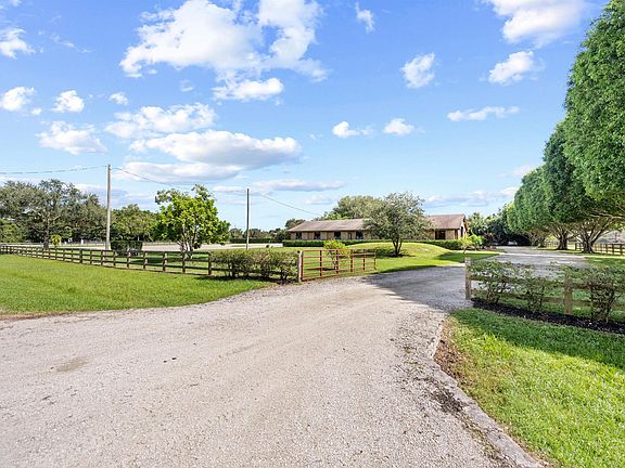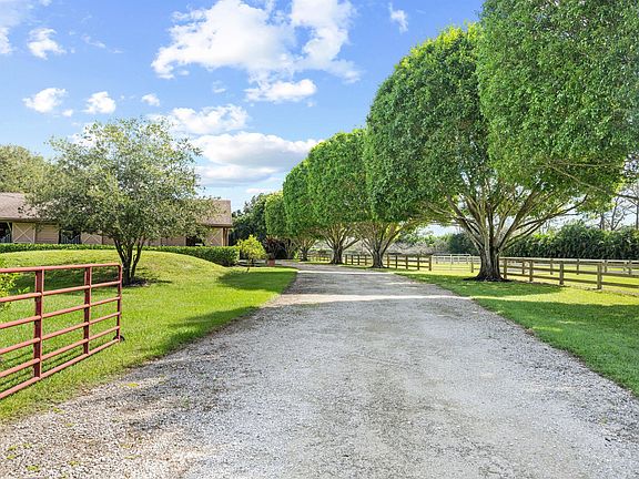 This 5 acre farm with 10 stalls, oversized paddocks, large sand arena, 2 RV hook-ups tack & storage rooms, ample parking & trailer storage and city water has it all. The entire perimeter is fenced. The majestic ficus tress frame the entrance to the property and paddocks. Only minutes from the Wellington Nature Preserve with miles of trails for your riding pleasure. Truly a Must See property!