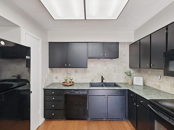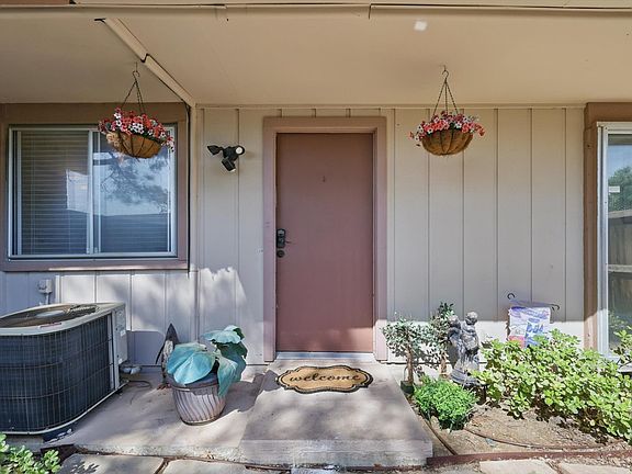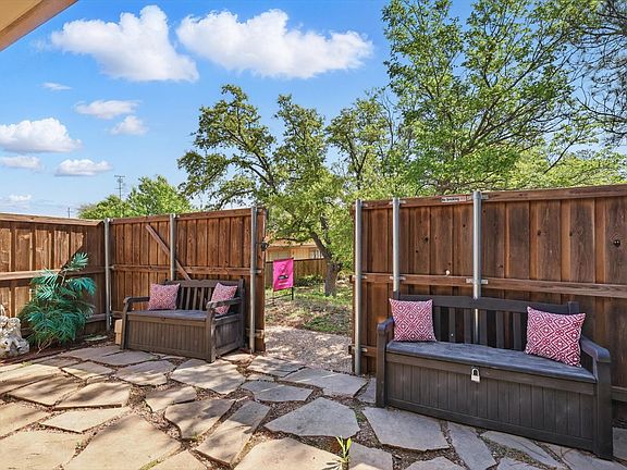 This stylish and meticulously cared-for 2-bedroom, 1.5-bath end-unit townhouse is the perfect blend of comfort, privacy, and convenience. Tucked away in a quiet setting with a lush greenbelt right out front, it offers the charm of a private retreat with easy access to everything you need. Inside, the open living space features gleaming hardwood floors and plenty of natural light-ideal for both relaxing evenings and hosting guests. The modern eat-in kitchen shines with sleek black cabinetry, ample storage, and generous counter space. Step right out to your private stone patio, fully enclosed with a board-on-board fence, creating the perfect spot for morning coffee, al fresco dining, or quiet downtime. Upstairs, both bedrooms are thoughtfully separated from the main living area, providing added peace and privacy. The oversized primary suite easily accommodates a desk, reading nook, or extra furniture, while the built-in wall cabinetry and under-stair closet ensure storage is never a concern. This move-in ready home is packed with extras: refrigerator, washer, dryer, Ring camera system, and Nest digital thermostat are all included, giving you smart-home convenience from day one. Location couldn't be better-just minutes from DFW Airport, with a DART rail station less than a mile away and a bus stop right outside the community. Whether you're commuting, traveling, or exploring the city, you're always connected. As part of The Club Townhomes, residents enjoy access to resort-style amenities including sparkling swimming pools, tennis courts, and a welcoming clubhouse-perfect for both active living and social connection. This end-unit gem offers more than a home-it's a lifestyle. Welcome to your perfect retreat.