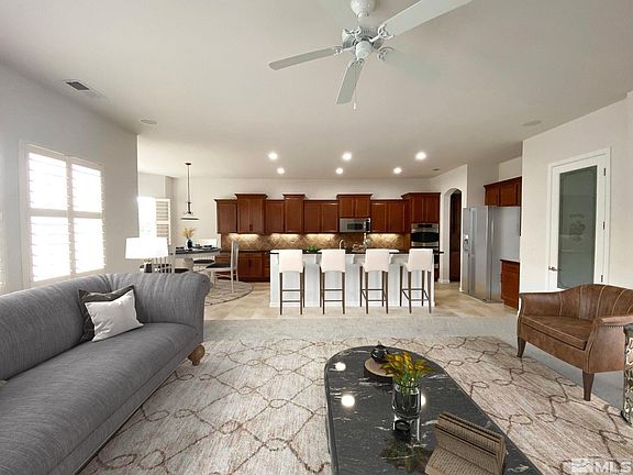Beautiful home with amazing views of Mt. Rose and the Sierras! The home was completely remodeled two years ago, and interior was recently painted. Gourmet kitchen features granite countertops and stainless steel appliances and an oversized breakfast bar. Open floorpan with tons of space! Backyard backs up to open space - enjoy the views from your fire pit! Fireplaces in the master bedroom and great room. Master bedroom has an adjoining den, perfect for a home office!, There are custom vanities in the master bathroom. Oversized 3 car garage has custom Behr Granite Grip floor covering and room for all of your toys! Home has a new drip system, new front landscaping with shrubs and flowers, new garbage disposal, new irrigation control valve, and surround sound in the family room. This home is perfect for entertaining, with a beautiful bar off of the kitchen! Zoned for highly desirable schools and close to shopping, gorgeous walking trails, and only 45 minutes from beautiful Lake Tahoe!