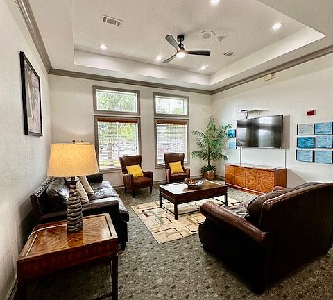 - Exterior features: 1 covered parking space is included in lease., Barbecue, Basketball Court, Business Center, Covered Parking Space Included, Game Room, Garbage included in rent, Heating: Electric, High-speed Internet Ready, More Than One Year Lease, On-Site Management, One Year Lease, Online Maintenance Portal, Online Rent Payment, Package Receiving, Party Room, Pet Park, Picnic Area, Spanish Speaking Staff, TV Lounge, Tub/Shower, Volleyball Court