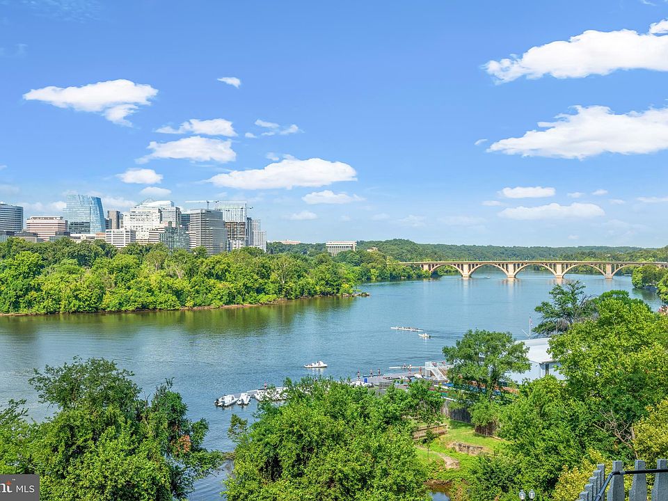 Eighth floor, corner unit with unobstructed views from every room of the Potomac River, from Georgetown to the Memorial Bridge including the city of Arlington skyline! Completely renovated unit with 2Bedrooms/2 Baths + half bath with over 2600 SF. Balcony and new floor-to-ceiling sliding door windows along the entire perimeter of the apartment to step out from each room. Luxuriously large foyer perfect for art and expansive Living Room includes wall of built-in bookshelves and bar. Additional sitting area perfect for an art gallery and room for a grand piano. The Dining Room sits affording views out of a corner wall of windows ideal for sunset viewing and waterfront activity. A library/office/den is off the chefs kitchen. The bright and spacious kitchen includes top of the line appliances, custom cabinetry and marble countertops. Washer/dryer in the unit. Excellent storage throughout plus additional designated basement storage unit. Situated a few minutes walk to the Kennedy Center, the new Reach, Georgetown, the National Mall and river pathways. Watergate West also boasts a gym and outdoor pool with beautiful landscaped gardens. One assigned parking spot (rented at $300/month each) complete this spectacular offering. Parking is prepaid for 2 years.