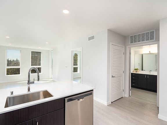 Embrace authentic Bay Area living at MV Apartments, where modern one and two bedroom homes meet meticulously landscaped grounds and premier community amenities in a prime Mountain View, California, location. Every detail inside our pet-friendly layouts is intentionally designed, from must-have features like in-home laundry appliances and high-speed internet access to thoughtful touches like built-in USB outlets and a LATCH keyless entry system. Each home also comes standard with distinctive wood-style flooring and a stainless-steel appliance package, while an upgraded finish package and private patios are yours to enjoy in select floor plans. Whether you're treating yourself to ultimate relaxation at our resort-style pool and spa or taking in the panoramic mountain views from one of our rooftop lounges, you'll want to take advantage of our exclusive on-site extras. And when it's time to get out and explore, you're just steps from some of the best shopping, dining, and entertainment in Silicon Valley.