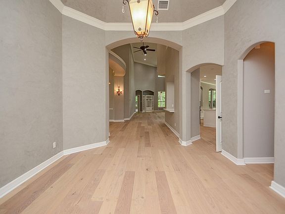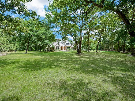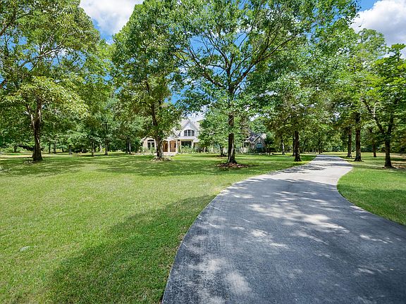 ONE OF A KIND ESTATE w/19.99+ acres quiet, & private; yet close to everything-The Woodlands; Grand Parkway; I-45, etc. Private auto entry gate & winding road leads you to the front of the house. Once you enter, you're surrounded by luxury touches-new European White Oak flooring through most of the home flows seamlessly. Soaring 20' ceilings & archways, crown molding, custom lighting, neutral, grey paint color (fresh paint) & stone fireplace in main Living Room. Very open. Kitchen is a cook's dream w/new stainless appliances, quartz counters, center island & counter seating. Stunning views from almost everywhere in house. 2 Primary suites, 4 bedrooms total down-all w/private baths-updated! Upstairs features a huge game room, media room (or Study); & a Bonus room for a gym, craft space, or it could be another bedroom if you prefer. Wrap around back porch. 4+ car garage; tons of attic space; new roof, generator, unrestricted. Don't miss this one-its a true gem. HOUSE DID NOT FLOOD