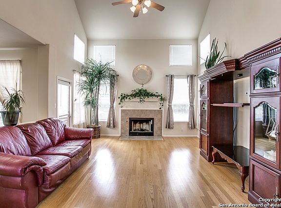 This Beautiful Move-in Ready 4 Bedroom/2.5 Bath with GameRoom. Solar Powered Heated In Ground Pool! Brick & Wood Siding Woodside home in the Popular Gated Trinity Oaks. Spacious Master Bedroom with Bamboo Wood Flooring, Down Boasts Bay Windows, Double vanities, Garden Tub/Separate shower, & Huge Walk-In Closet. Soaring Ceilings. Formal Enclosed Dining. Sits on Private Corner Lot with Mature Trees! Community Park and Clubhouse!