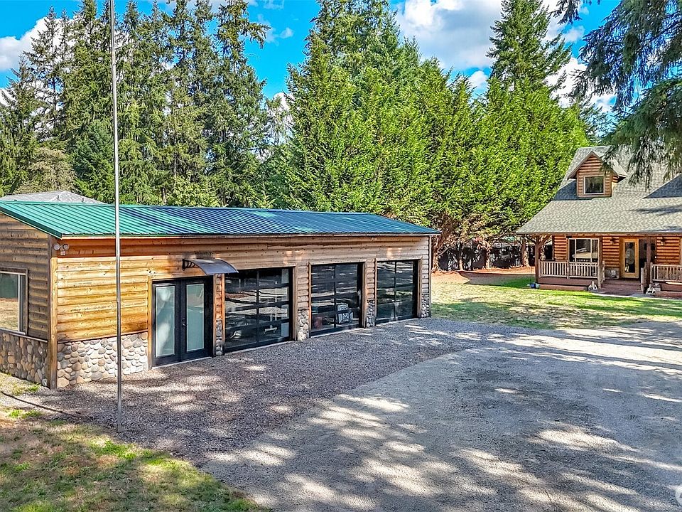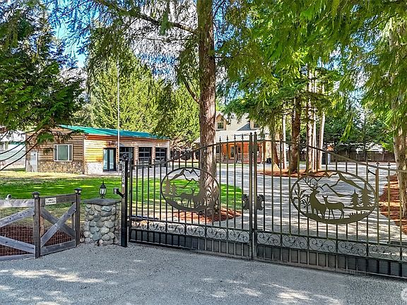 Luxury custom Cape Cod log home on a gated, serene shy acre. From the country style front porch, enter into beautiful vaults & beams, rich hardwoods, tongue & groove ceilings & floor to ceiling rock surrounding a cozy pellet stove. Open island kitchen boasts marble countertops, custom Alder cabinets, SS appliances. Main floor primary suite w/priate deck, WIC, tiled bath w/heated floors, jetted tub, separate shower & copper sinks. Upstairs has loft/flex space, two addl. beds & 3/4 tiled bath. Custom finishes & AC! Finished 980 SF 3 bay shop w/bonus room, 1/2 bath PLUS a second 3 bed septic system for ADU/2nd dwelling. Plenty of parking for RV & toys! Conveniently located between Covington & Maple Valley amenities. Just mins to I-90/Hwy 18.