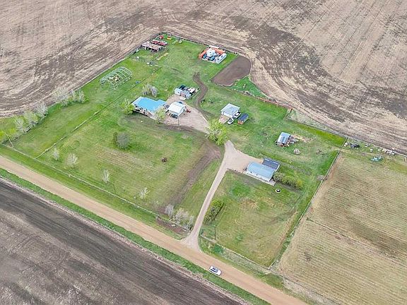 Quiet Country Living on a 10 Acre Property! Horse Enthusiasts, Hobby Farmers, Multi-Generational Families pay close attention to this acreage. 1331sqft Country Bungalow, 40'x22' Illegal Suite Outbuilding, 2 Double Detached Garages, 1 Single Garage & 3 Sheds. The Bungalow has a vaulted ceiling over the open flowing kitchen-living-dining room & hardwood floors underfoot. Lots of counter/cupboard space & breakfast bar seating in the kitchen with newer appliances. Sunroom accessed through living room adds additional living space & has sliding doors opening up to the wrap-around deck with expansive prairie views. Mud room off the kitchen is a great transition from the outdoors. Laundry conveniently located on the main floor next to the 2pc bathroom. Primary Bedroom has 4pc en-suite bathroom & walk-in closet. In the basement; 2 bedrooms, rec room, flex room with new vinyl plank flooring, 3pc bathroom with shower. The Illegal Suite Outbuilding has a generous sized bedroom with a walk-in closet, kitchen with appliances, 4 pc bathroom, stacked washer/dryer laundry, living-dining room area. If you desire to live away from the congestion & busyness of the city then this is the property for you. Located 12km west of Beiseker, but not too far from Airdrie(27mins) to be completely isolated from amenities. This acreage is a must see.