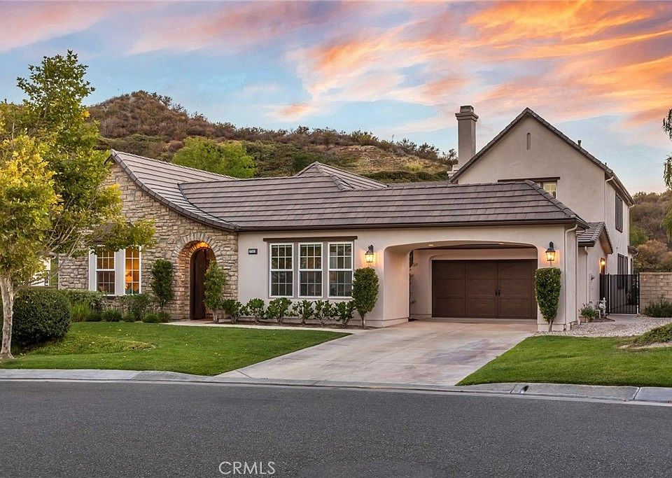 Come experience this exquisite Executive Home in the coveted gated Robinson Ranch neighborhood situated on a cul-de-sac on one of the largest lots in the neighborhood. Offering 5 bedrooms, 5 baths, a private studio, great room, formal living and dining rooms, office nook, and a flexible loft, this residence is designed for both comfort and style. Arrive through the grand gated entry and discover a charming courtyard with tranquil fountain, seating area, and striking arched wood doors that set the tone for what’s inside. The formal entry welcomes you into a bright and airy living room featuring a sophisticated fireplace, custom built-ins, and French doors opening to the inviting courtyard. The expansive great room showcases a warm fireplace with mantle and seamless access to the resort-like backyard. The chef’s kitchen is a true showpiece, boasting rich maple cabinetry, elegant granite countertops, Monogram stainless appliances—including a 42" built-in refrigerator, double ovens, dual dishwashers, warming drawer, trash compactor, and beverage center plus a massive center island with seating for four, casual breakfast nook, butler’s pantry, and separate walk-in pantry. The formal dining area is ideal for entertaining and flows effortlessly into the heart of the home. Retreat to the luxurious lower level primary suite with a sprawling walk-in closet, cozy fireplace, and direct access to your private outdoor sanctuary. The spa inspired ensuite bath features an oversized double vanity, jetted soaking tub, and spacious walk-in shower. Two additional bedrooms on the main floor share a convenient Jack-and-Jill bath, and a detached studio (casita) offers endless potential as a guest suite, gym, or office. Upstairs, a generous loft with custom built-ins provides the perfect space for lounging or movie nights, while two additional bedrooms each include their own ensuite bath and picturesque neighborhood views. Step outside and discover an entertainer’s dream yard with spool, patio with outdoor fireplace, incredible professional landscape and a large grassy area ideal for play and gatherings. Robinson Ranch is renowned for its premier Golf Course and prestigious Country Club, offering the ultimate blend of luxury and lifestyle. Easy access to the freeway and close to shopping!