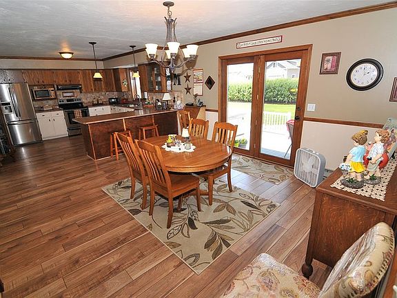 Custom Home located 2 miles West of 4 Corners on .93 acre with no County Zoning. Features include: View of three mountain ranges, finely manicured outside and custom finishes in side. The open floor plan on the main floor, includes a custom kitchen, rock tile backsplash, kitchen counter bar, pantry and all kitchen appliances. Living room has fireplace, new light fixtures with crown molding and chair rail added throughout the home. The lower level includes a 16 x 30 rec room with wood burning stove and bedroom with rustic log cabin siding. The 3 Car garage gives plenty of room for inside parking with additional open land for RV or Boat parking. Deck (16x28) includes Hot Tub and maintenance free decking and railing. Energy efficient 1/2" foil insulation surrounds the home. New 1 yr old 12x16 Shed. As an added value, there is potential Commercial income with the ADA accessible 480 SF shop with private entrance, parking for 5 additional vehicles and includes another 1/2 bath.