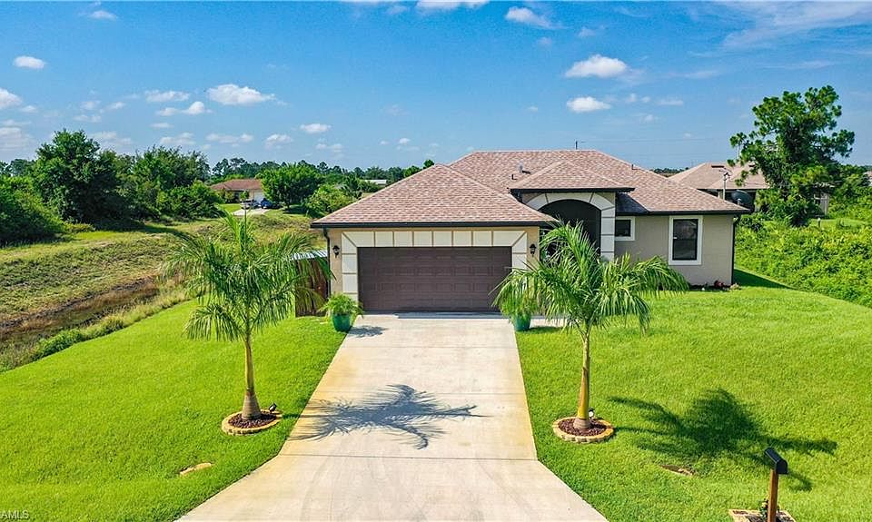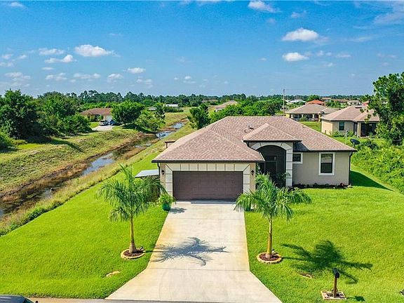 This Beautiful home was built in 2017 and is located at the end of the street with a canal that runs along the side of the entire property and adds a great sense of privacy. After construction was completed, a full Irrigation system, Front and back screened lanai and Crown molding have been added to really set this home apart from the rest. As you enter the property you will notice Offset Tile Flooring throughout the Main Living Space, tons of natural light from the southern exposure and Tray Ceiling w/ Crown Molding and LED lighting. The Kitchen which is an Open Concept style offers Solid Surface Countertops, Full Appliance Package and Modern Style Cabinetry. The Master Bathroom offers Dual Vanities, Solid Surface Countertops, Linen Closet and Tiled Shower w/Glass Door. The property is minutes from a few of our areas best attraction not to mention quick access to Rt 75 and Southwest Florida International Airport.