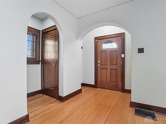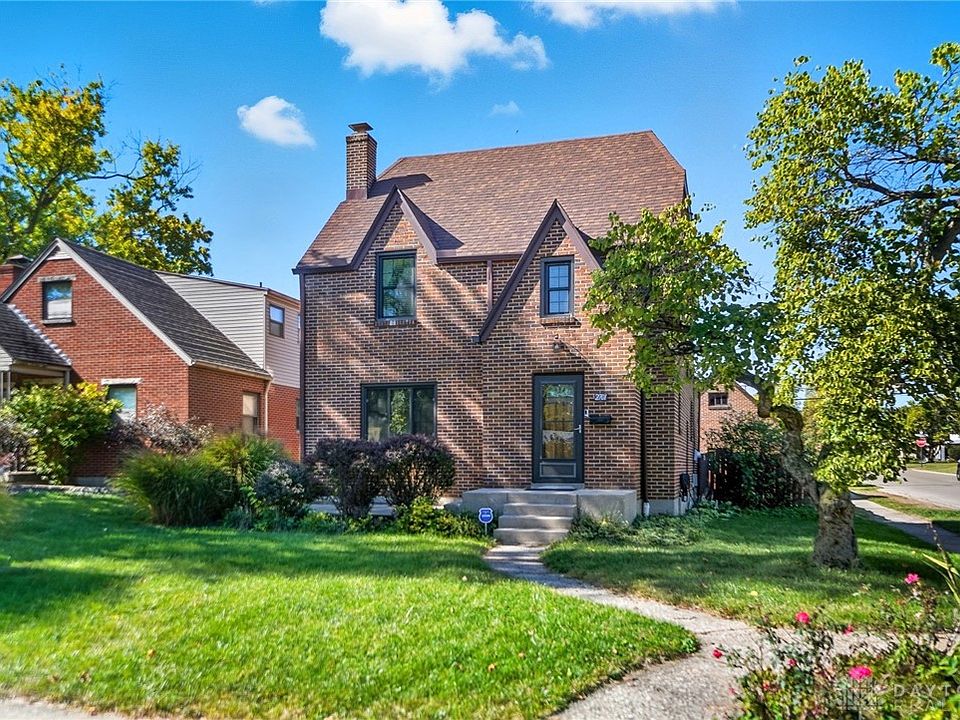 This charming 1930 all-brick home in Kettering features three bedrooms, a three-car garage, and a full finished basement offering additional living space complete with glass block windows. The lower level has a large laundry area (washer/dryer stay) with a handy mop sink and an additional storage room. The basement is protected by an AquaProof transferable warranty. This home measures in at just over 1500 sq ft above grade plus the basement. Its steep gables, warm hardwood floors and classic details throughout add character for those looking for something other than the typical ‘cookie cutter’ home. The walk-up attic provides excellent potential for future expansion or a creative studio space. The kitchen offers plenty of 42-inch cabinets, gas range, new microwave and adjacent breakfast area. There is a dining room for more formal dinners. The cozy living area includes a brick fireplace perfect for relaxing evenings. Step outside to a large multi-level wood deck and expanded patio overlooking the fenced yard—ideal for entertaining or quiet evenings outdoors. The high efficiency hvac was installed in 2022 and features a humidifier; water heater was new this year. The current owners have installed new Pella windows throughout the entire home and have increased the home’s insulation value, as well. Don't miss the cedar lined linen closet upstairs. The 3-car brick garage with walkup loft is a rare find at this price point. With timeless curb appeal and solid craftsmanship, this home combines vintage charm with everyday functionality in a desirable Kettering neighborhood, adjacent to Oakwood.