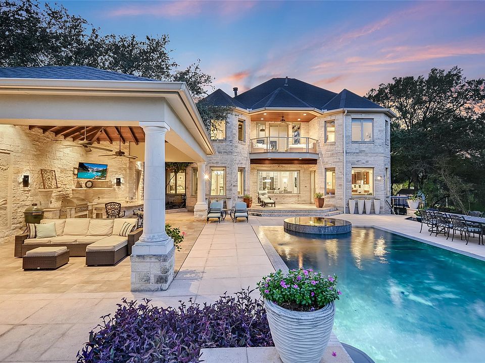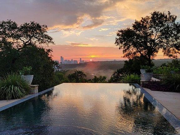 Welcome to the epitome of luxury living at 2701 Bartons Bluff Lane in Austin, TX, situated within the exclusive gated community of Palisades on Barton Creek. This magnificent 5-bedroom, 6-bathroom property spans an impressive 5,250 square feet and is situated on a sprawling 1.67-acre lot with the greenbelt right in your backyard!. The crown jewel is the unparalleled and unobstructed view of downtown Austin throughout the home. The backyard is the perfect location to enjoy our city’s morning sunrises, the reflection of the evening sunsets off the downtown buildings, and holiday firework’s displays. Truly breathtaking! Step inside to find an elegantly appointed home featuring extensive upgrades, including LED lighting, custom built-ins in multiple rooms, and an upgraded Sonos sound system. The kitchen is a chef's dream, boasting Miele appliances, a Viking stovetop, and a Hoshizaki ice machine. The primary suite offers spectacular downtown vistas and a gas fireplace in the newly remodeled primary bathroom for ultimate relaxation. The outdoor oasis features the fully resurfaced infinity pool and spa with an evaporative cooler and automated chlorination system, complemented by a full outdoor kitchen and gas fire pit, perfect for entertaining! The backyard, with its lush landscape and mature trees, provides private access to the protected greenbelt and walking trails. Enjoy a quick walk to Taco Deli, an Austin distinctive! The lush green space setting offers a serene escape just minutes from the city. Additional highlights include a media room with a high-end projector, a custom playscape with a water slide, and a garage equipped with a 240 V outlet for electric car charging. This property has been used as a filming location for various national and local commercials. Discover the perfect blend of luxury and location while enjoying the views of some of Austin's iconic downtown buildings...State Capitol, Tallest Building in Texas, Frost Bank Building and UT Tower.