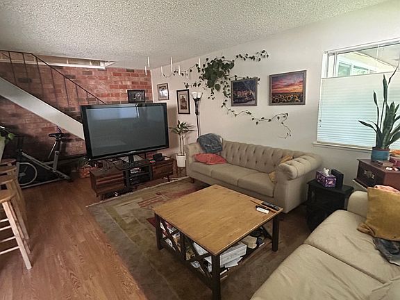 The condo is multi-level, with bedrooms and the bathroom upstairs, and the living room and kitchen (hardwood floors) downstairs. The kitchen is fully equipped, including a dishwasher, microwave, and air fryer. You'll also enjoy central heating and air, shared laundry (coined base), free parking, and access to a community pool during the warmer months. The HOA handles exterior maintenance, so no yard work or hassle.
