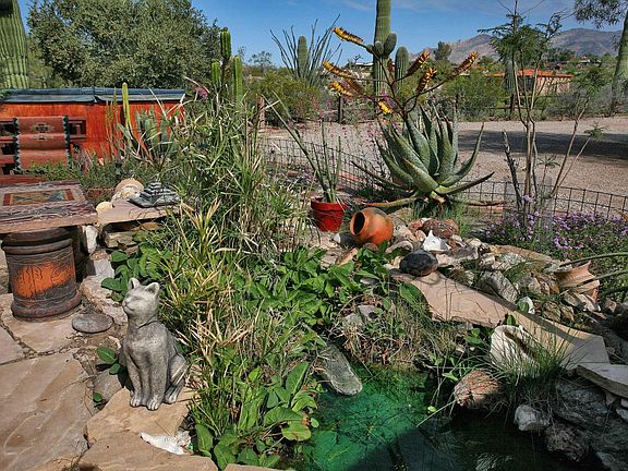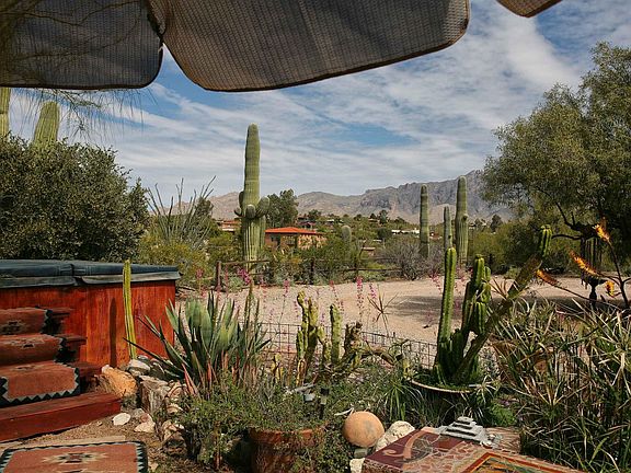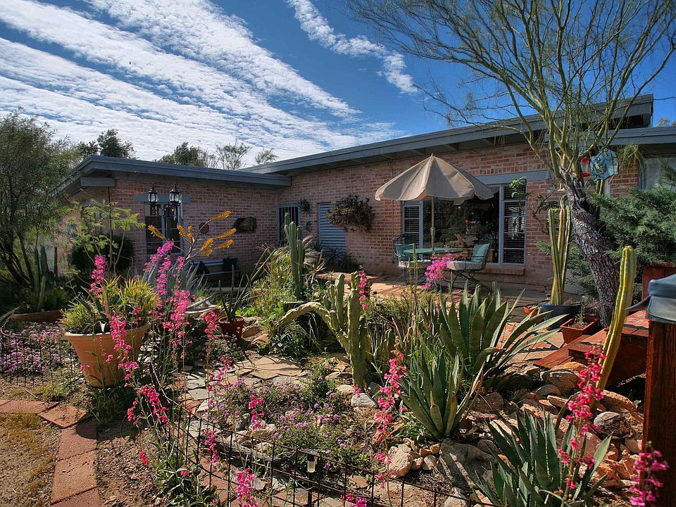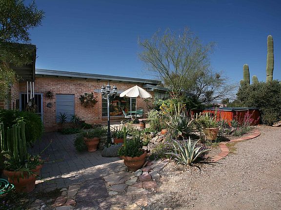 For more information on this property, contact the Listing Agent, The Roberts and Norris Team at (520) 918-5293 or bobn@LongRealty.com. Range priced $324900-$364900. This is a wonderful, 60 year Joesler designed home which has been thoughtfully expanded and modernized on a secluded private lot with exceptional Catalina mountain views. Open great room and dining, inviting brick fireplace to take the chill off a brisk evening. Beautiful beamed and sloping ceilings throughout with natural wood patina. Kitchen has raised ceilings, and hickory cabinets with tiled floor, counters and back splash. Three carpeted bedrooms, one with a Murphy bed installed, all with light kits and fans. Wonderful Arizona room, six large duo-pane windows for great views! Exterior is extremely private, with three large patios to enjoy the outdoors. There's mature landscaping, exotic plants and cacti, over 30 saguaros, and a cooled garden room.