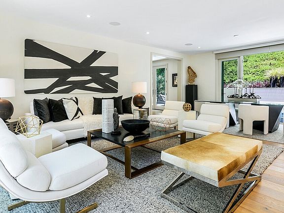 Premier residence offering an ultra-luxurious lifestyle. Extensive modernization of superior quality & scale. Light-filled entry with striking 25-foot glass ceiling. Smart home includes two master suites and is equipped for state-of-the-art living. Grand master suite fit for the most discerning buyer; featuring a luxurious bathroom, oversized shower, soaking tub & separate large dressing room. It occupies most of the second floor opening to multiple decks overlooking the pool and sculptural fire pit. Carrara marble blankets the kitchen's countertops, walls, backsplashes, and extended island, and the culinary center is outfitted with Viking professional-grade stainless-steel appliances. The home lends itself to exhibiting your personal art collection and offers the indoor-outdoor SoCal lifestyle with several patios suitable for both large & intimate gatherings. The exterior is a lush fusion of succulents and greenery along with a lap pool and spa. This stunning home is a haven of calm.