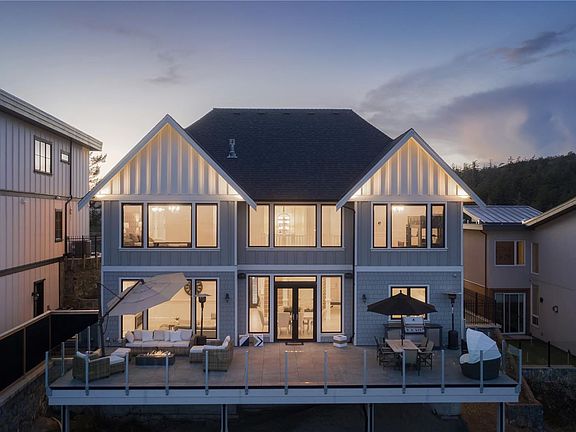 Discover elevated living at 2701 Goldstone Heights, where sweeping views of the Olympic Mountains, Esquimalt Lagoon, and Victoria’s skyline enhance this custom-built home. Thoughtfully designed to capture the scenery from nearly every room, the residence offers over 3,500 sq. ft. of refined living space with 20-ft ceilings, a striking glass temperature-controlled wine room, and a bright open-concept kitchen, living, and dining area. Floor-to-ceiling windows and double French doors lead to a 700+ sq. ft. terrace ideal for relaxing, entertaining, and soaking in the panoramic views. The chef’s kitchen features a Wolf range, Fisher & Paykel refrigerator, and elegant quartz countertops. All bedrooms are placed on the upper level for comfort and privacy, while the lower level provides flexible space perfect for hosting or unwinding. A legal one-bedroom suite above the double garage adds valuable versatility to this beautiful home.